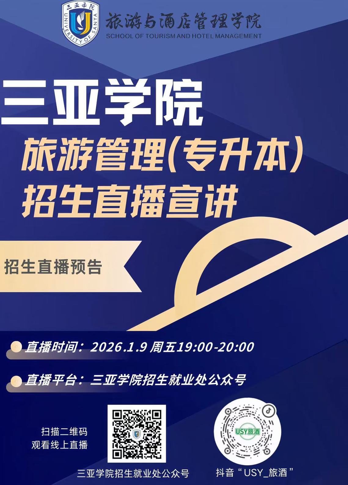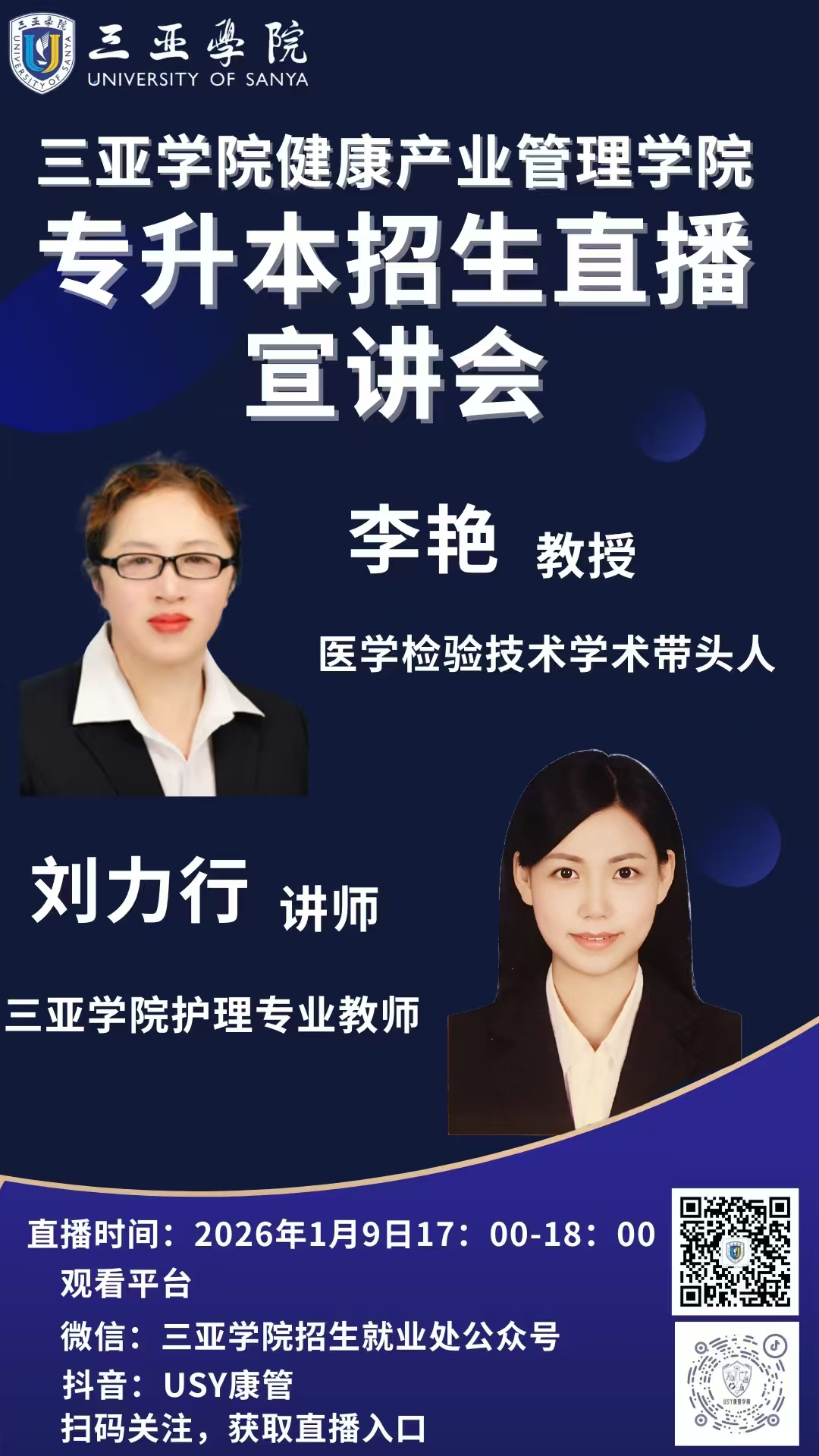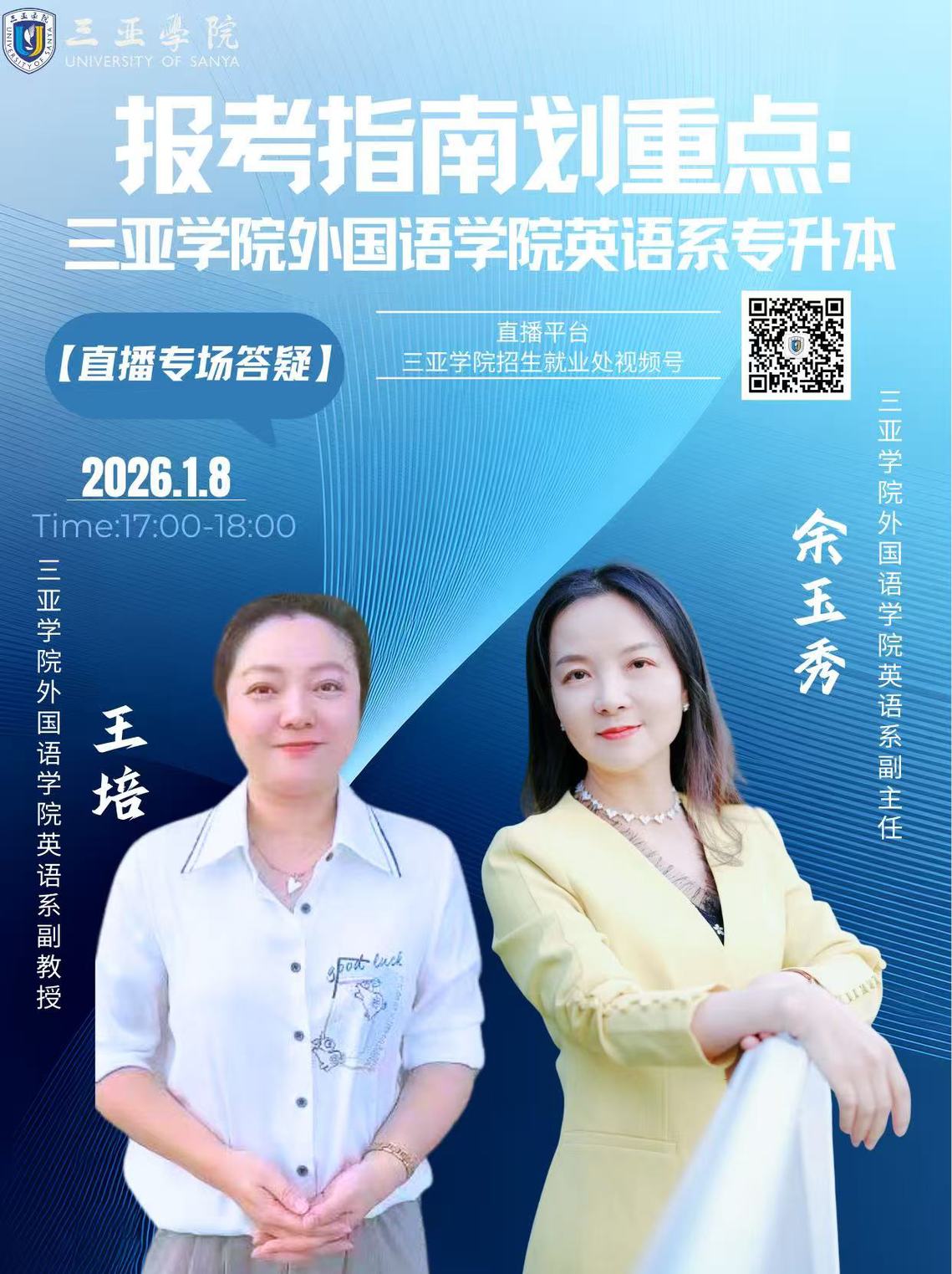 三亚学院2026年专升本报考专业解读直播!